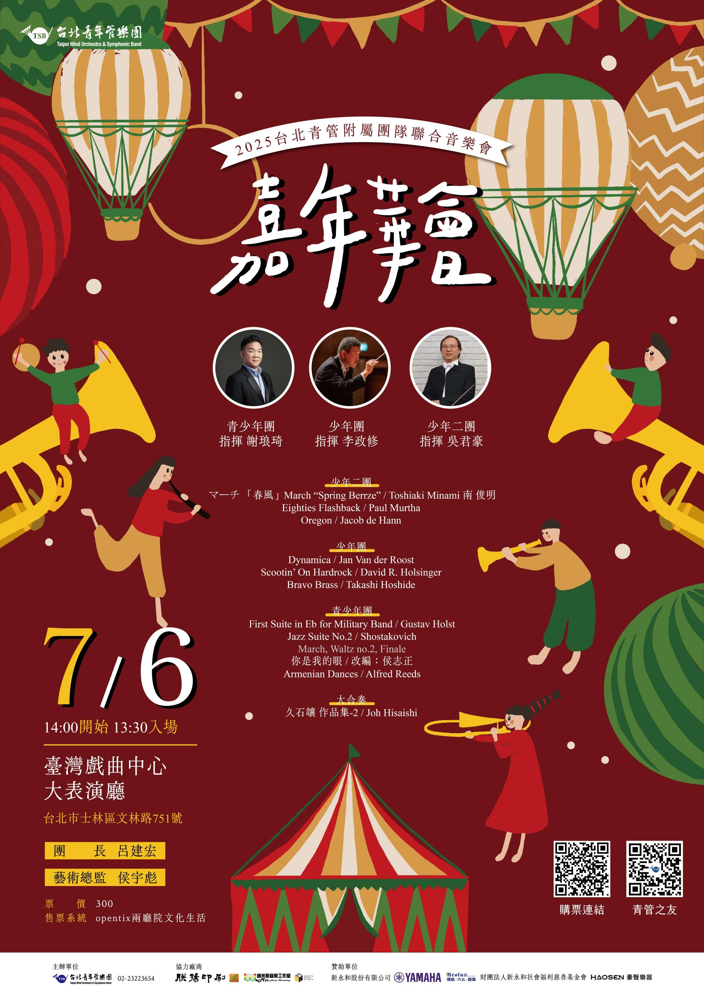 相關音樂會資訊請至台北青年管樂團臉書粉絲專頁查詢 (https://www.facebook.com/tsbgroup/)。