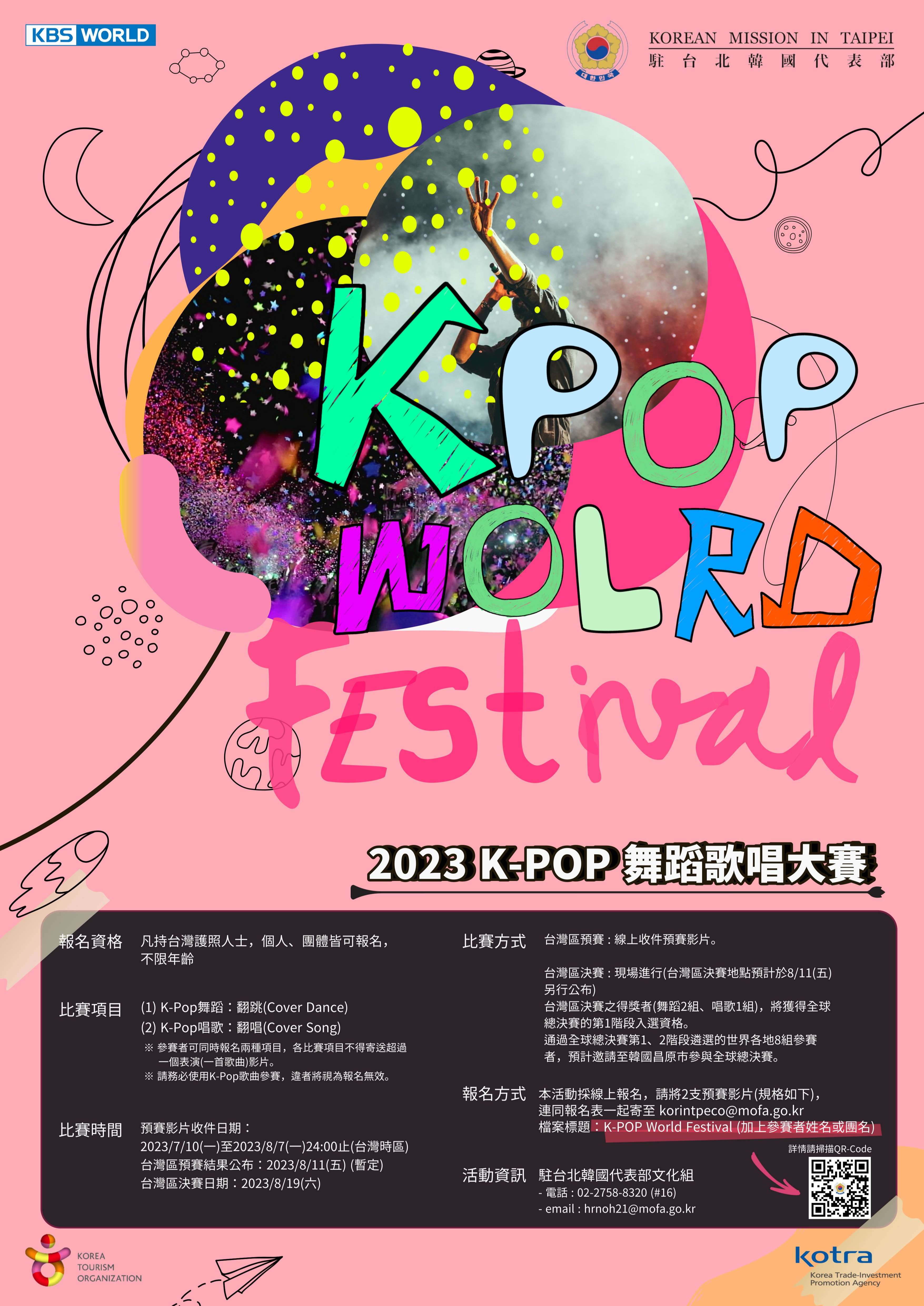 駐臺北韓國代表部辦理「K-POP舞蹈歌唱大賽」活動,請貴單位協助宣傳周知,請查照。