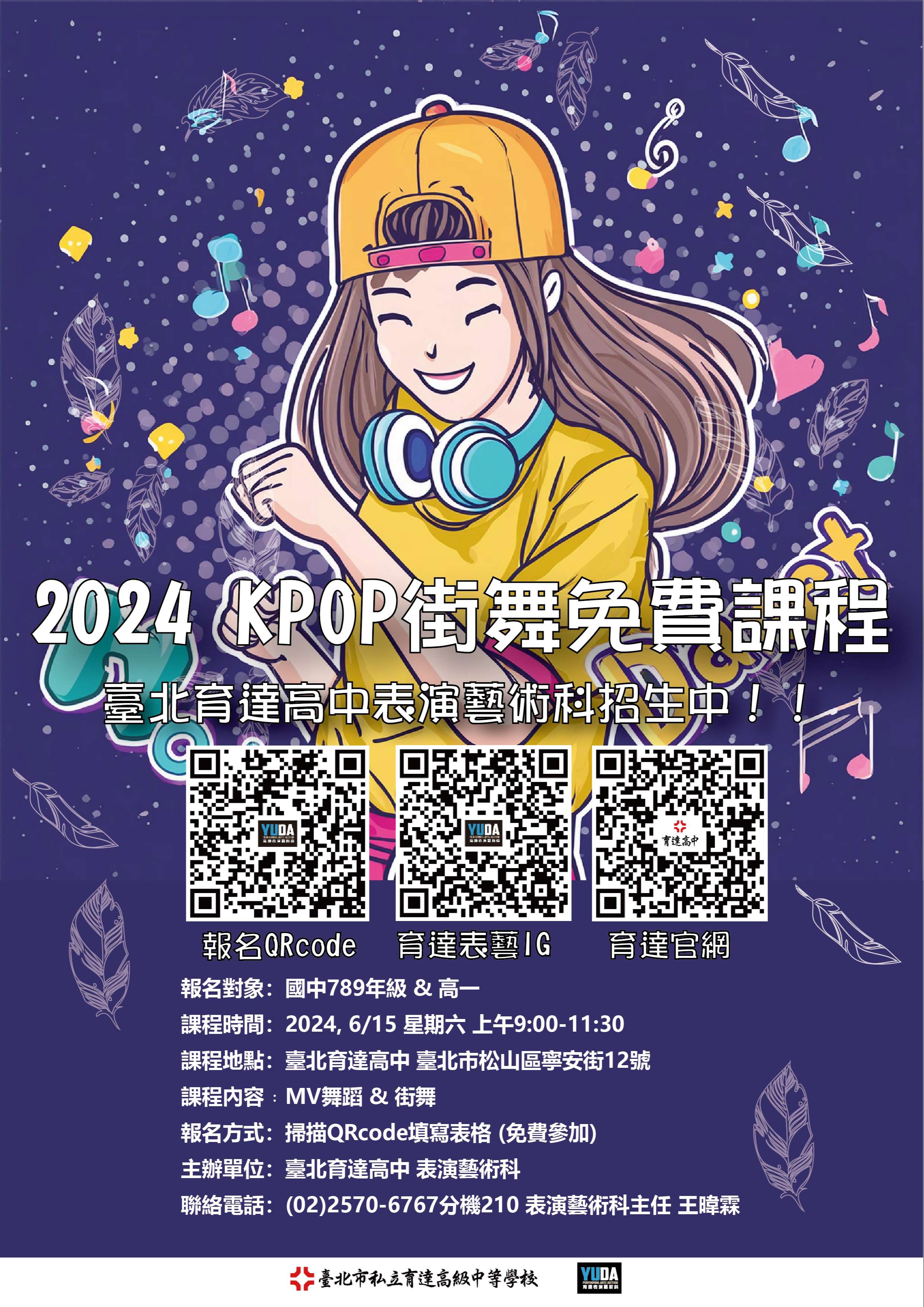 育達高中舉辦「2024 KPOP街舞免費課程」,鼓勵學生參加。