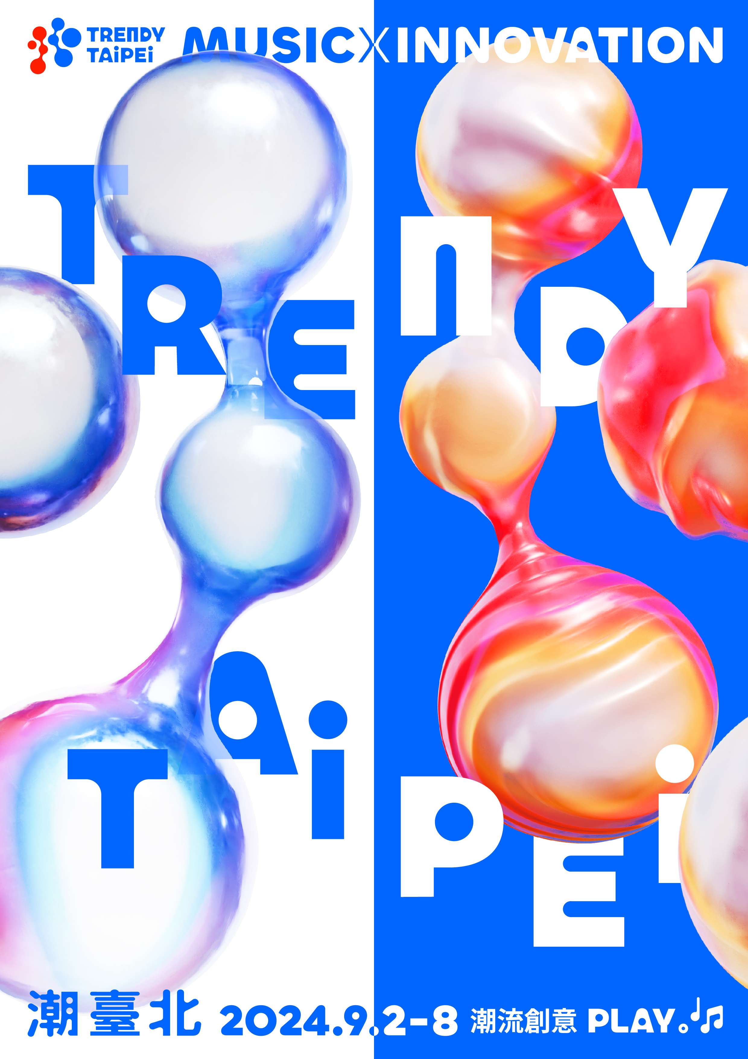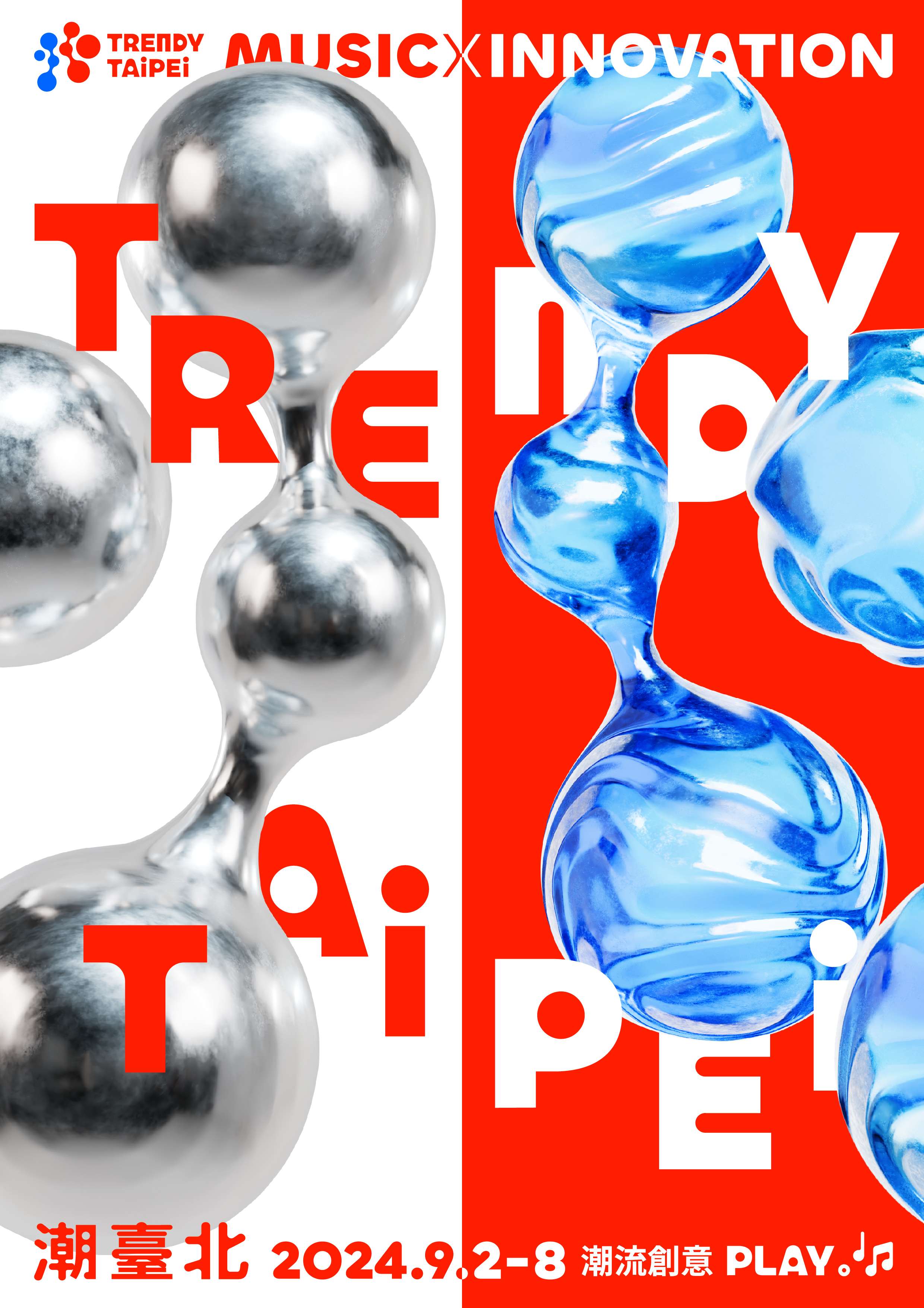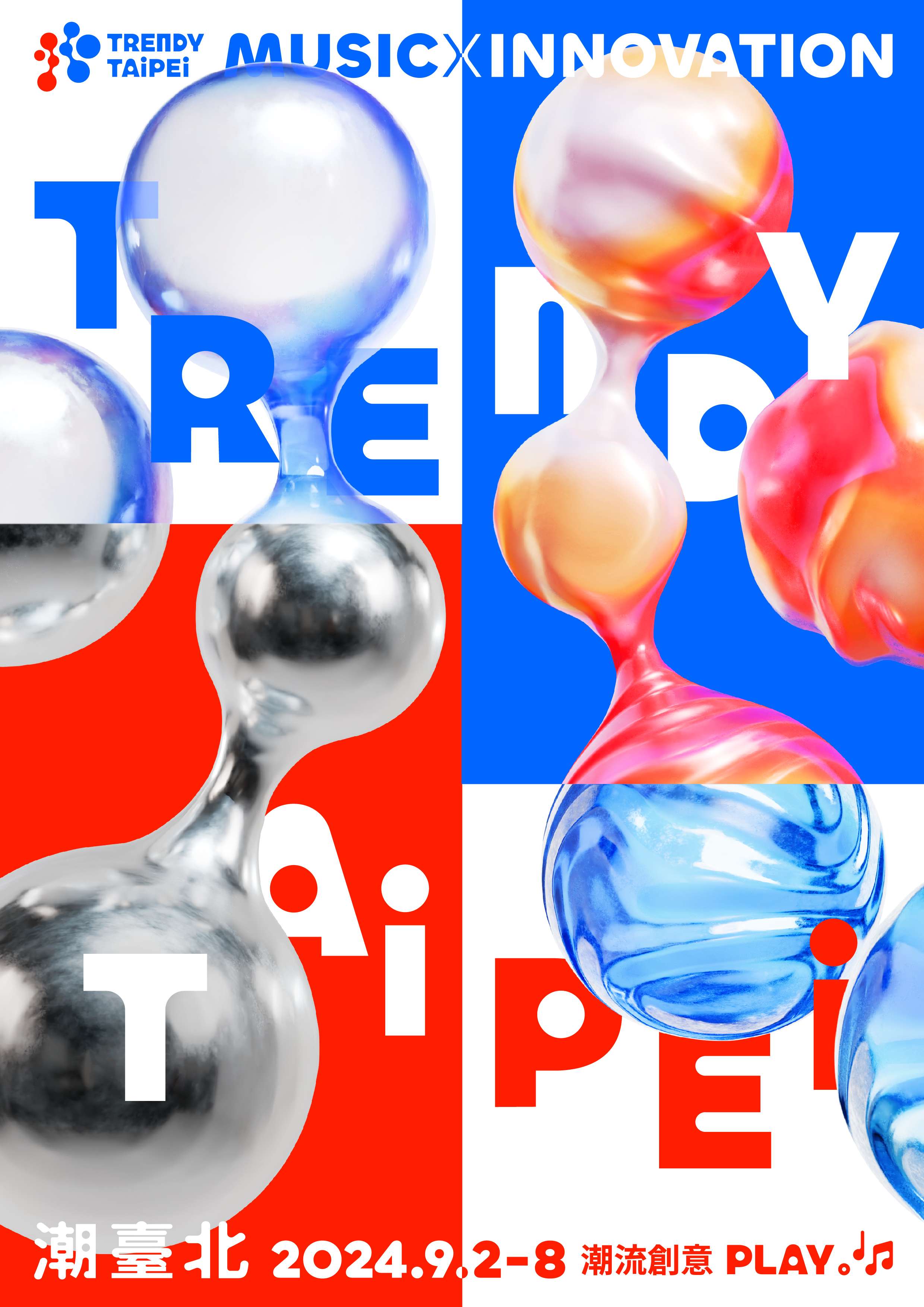 潮臺北Trendy Taipei 將於9/2-8展開,以音樂與創新為題,13項亮點主題活動,以充電及放電兩大核心 概念,舉辦超過百場音樂展演、國際論壇、主題演講, 打造嶄新的臺北城市品牌,詳情請上潮臺北官網及粉絲專頁。
