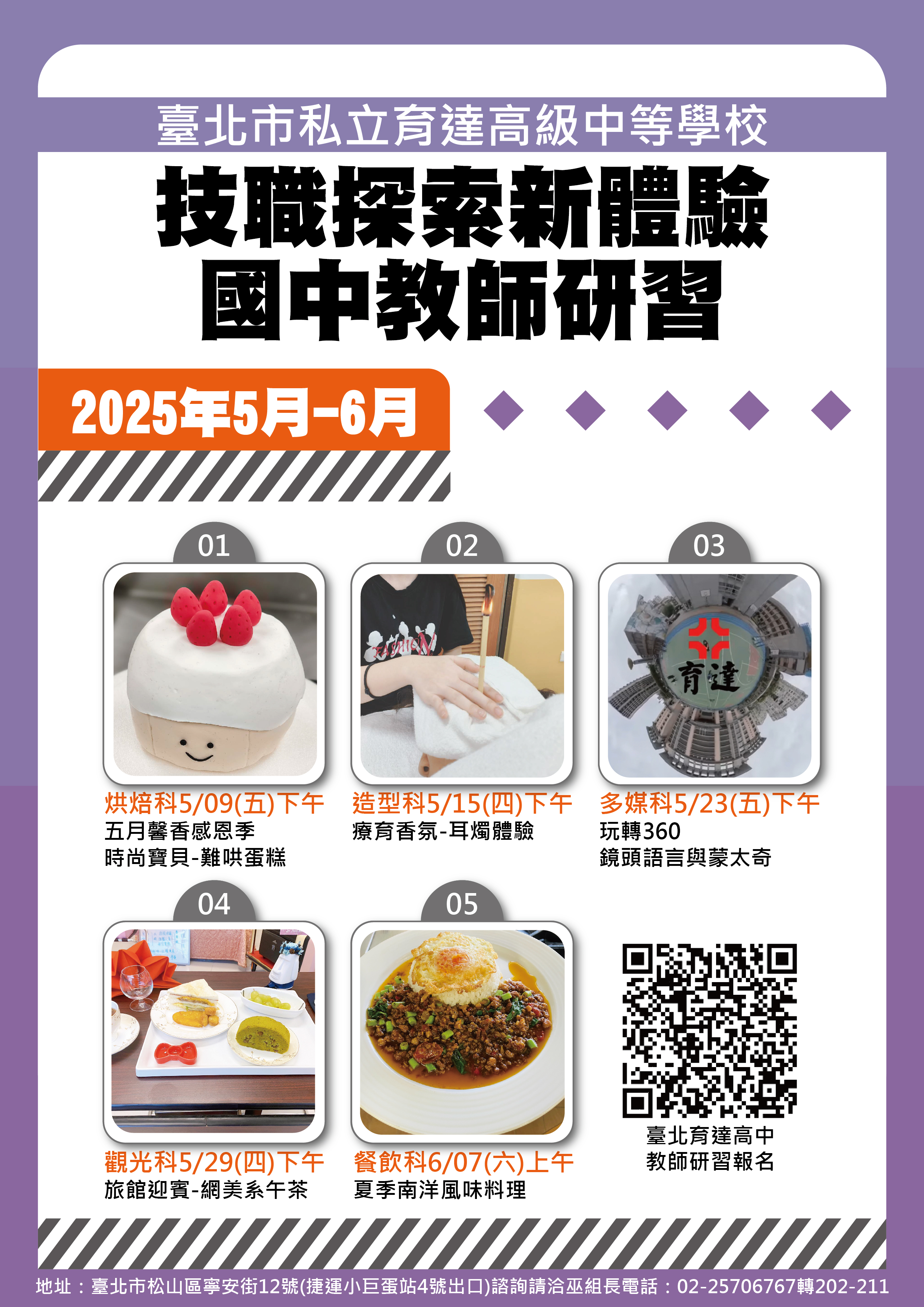 一、轉知人臺北市私立育達高級中等學校(以下簡稱臺北育達高中)辦理2025年技職探索新體驗─國中教師研習活動,課 程多元豐富深獲好評,歡迎各國中教師報名參加。