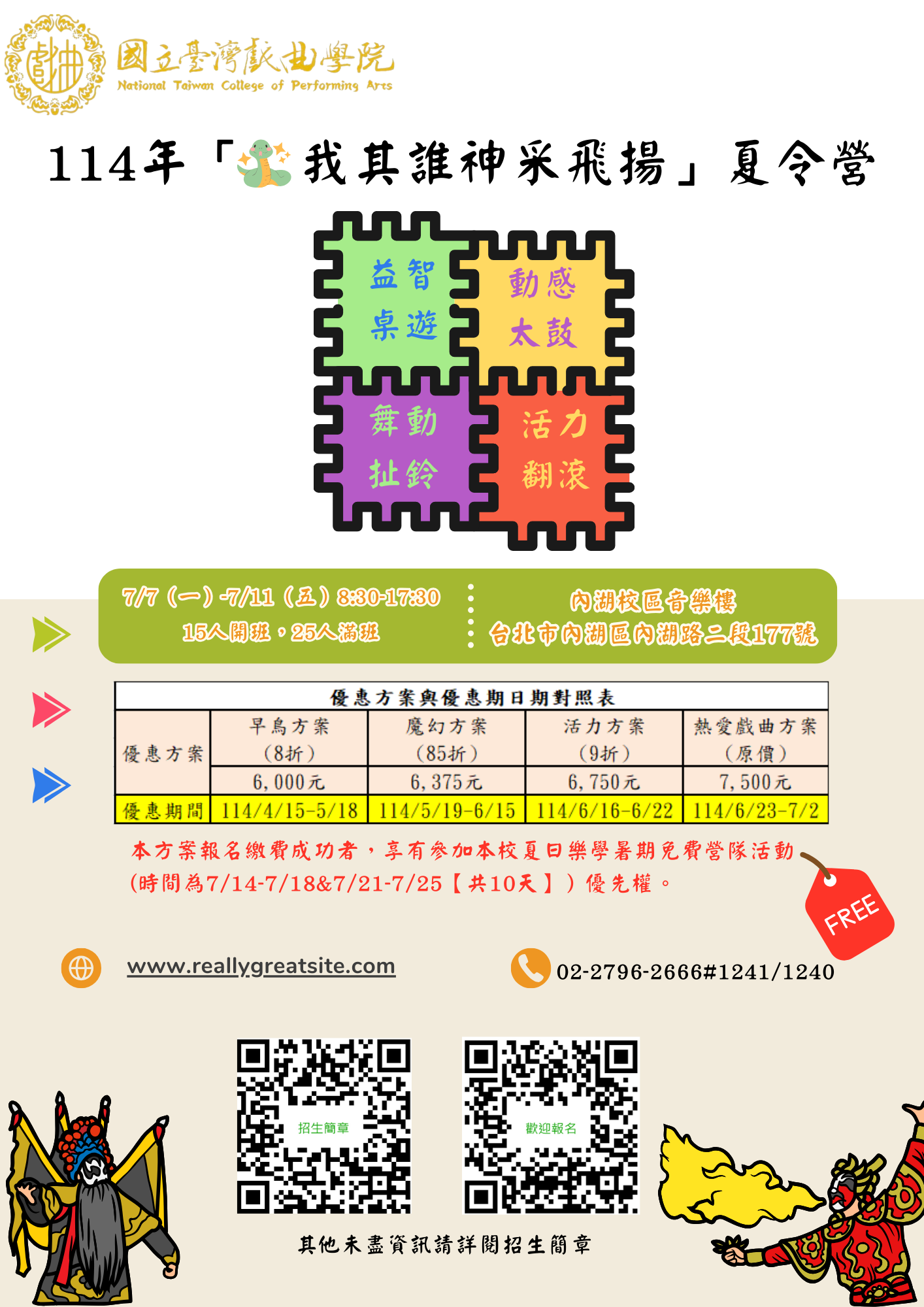 一、轉知國立臺灣戲曲學院辦理「114年蛇我其誰神采飛揚夏令營」招生訊息,詳見附件海報或活動報名網頁。